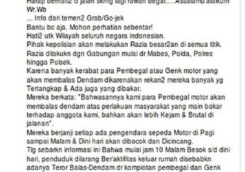 5 Tahun yang lalu - Tapi beberapa hari ini, masyarakat enggak tenang dengan pesan berantai soal aksi balas dendam yang akan dilakukan begal.