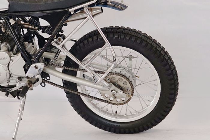 Selain itu bagian swing arm diberikan tambahan bracket dengan model knockdown untuk menopang shock breaker sehingga posisi motor bisa lebih tinggi.