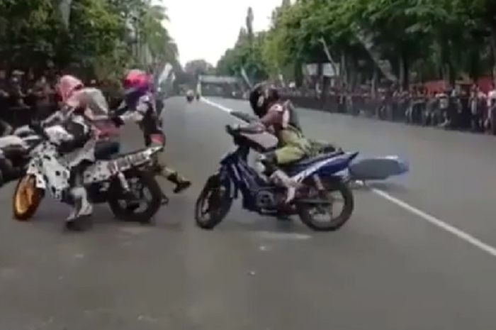 GridMotor.id - Video road race Indonesia yang memperlihatkan dua pembalap yang pukul-pukulan di tengah sirkuit bikin heboh.