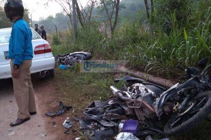 Enggak ada ampun, empat motor jadi korban dan rusak parah setelah tabrakan dengan mobil.