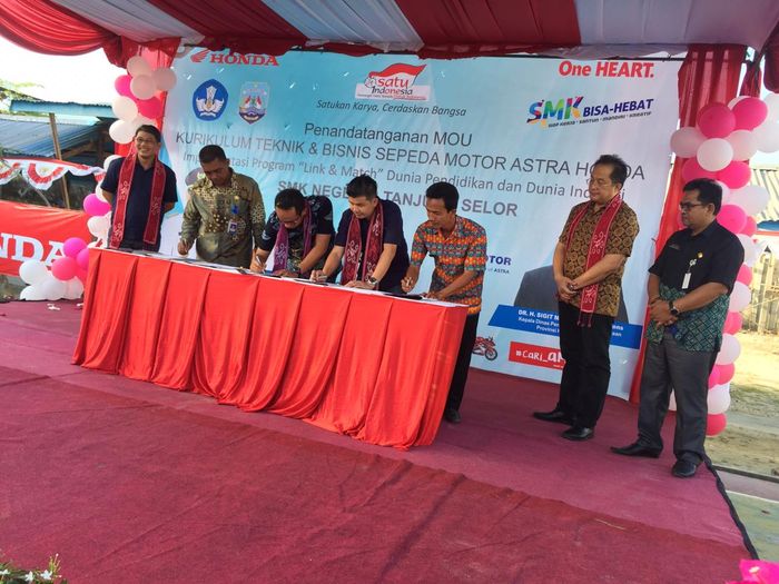 Proses penandatangan yang dilakukan pihak AHM dan SMKN 3 Tanjung Selor dalam hal pendidikan vokasi industri ini melengkapi 41 SMK mitra binaan Astra Honda Motor di seluruh pulau Kalimantan.