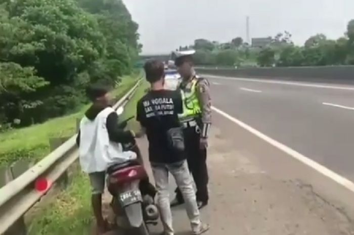 Polisi yang berasal dari PJR Cipularang itu menyayangkan pemotor yang masuk tol ditambah enggak pakai helm.