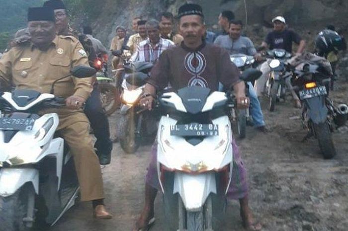 GridMotor.id - Bupati yang satu ini mungkin biker nih karena nekat cek kawasan banjir dan longsor dengan motor matik.