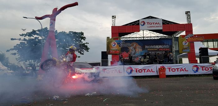 Digelar di Stadion Gelora Bung Tomo mulai pukul 9 pagi, Nongkrong Bareng TOTAL ini berkolaborasi dengan ajang latihan balap, yang digagas oleh Cornering Indonesia Surabaya (COINS).