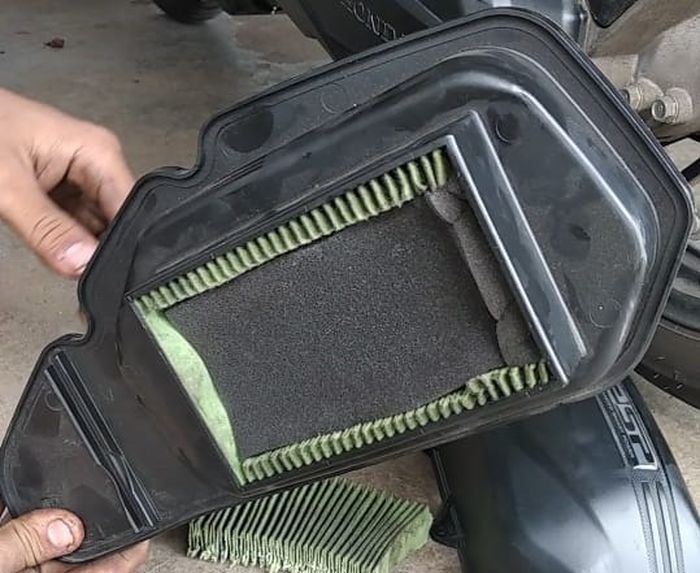 Setelah terbuka, kelihatan deh tuh filter udara kertas standar Vario 2018-nya yang berwarna hijau.