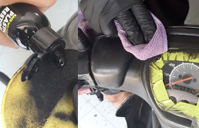 Bagaimana cara pakainya? Yang pertama, body dan panel yang akan dihitamkan, dibersihkan dahulu.