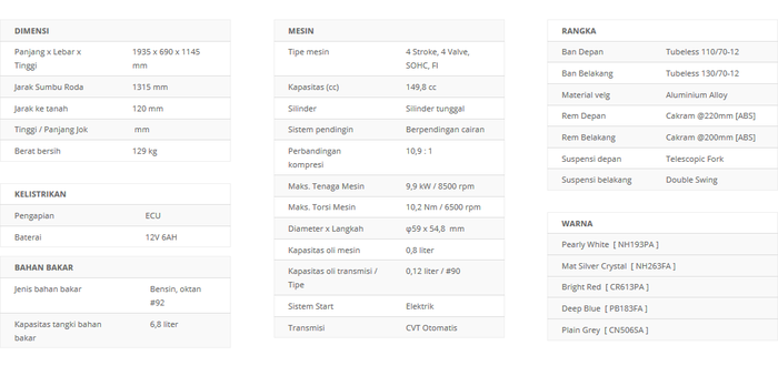 Nah, biar enggak penasaran, berikut ini spesifikasi lengkap dari Kymco Like 150i.