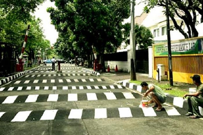 Proses pembuatan polisi tidur ternyata enggak sembarangan.