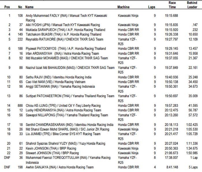 Artikel ini telah tayang di MOTOR Plus-online.com dengan judul ARRC Australia A.M Fadly Juara 1 Race 1 AP250 , Ini Hasil Lomba Lengkapnya
