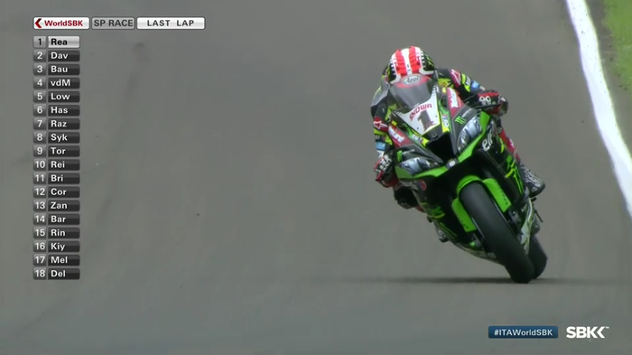 Menyusul di lap pertama akibat Chaz Davies melakukan kesalahan, Jonathan Rea langsung melesat kedepan.