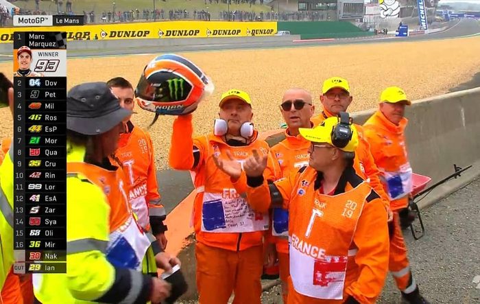 Pembalap tim Suzuki Ecstar itu memiliki alasan sendiri mengapa dia memberikan helmnya kepada seorang marshal.