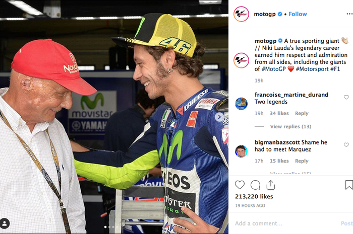 Pada akun Twitter resminya, juara dunia MotoGP lima kali Marc Marquez mengungkapkan perasaannya saat bertemu Niki Lauda.