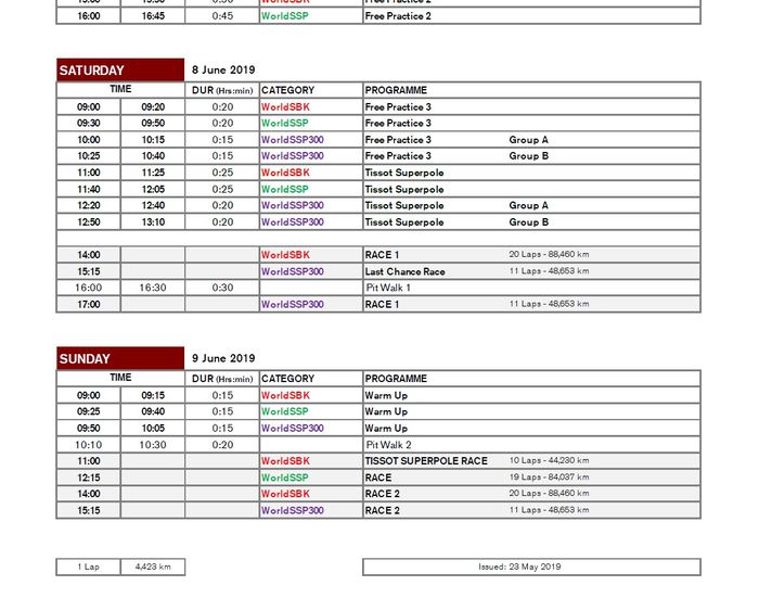 Berikut jadwal balap WSBK, WSS dan juga WSSP300 Jerez yang dilansir WorldSBK.com berikut.