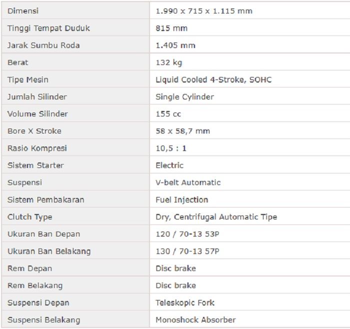 Yamaha NMAX (127 kg), Aerox (117 kg) sementara Yamaha Force 155 ini lebih berat yakni 132 kg.
