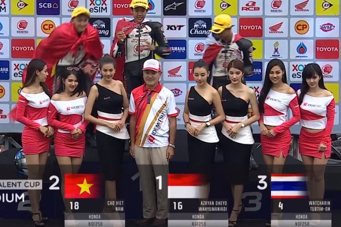 Pada saat race 1 Thailand Talent Cup (TTC) 2019 yang berlangsung di sirkuit Chang, Buriram, Thailand, (1/6/2019) pembalap Indonesia meraih podium 1.