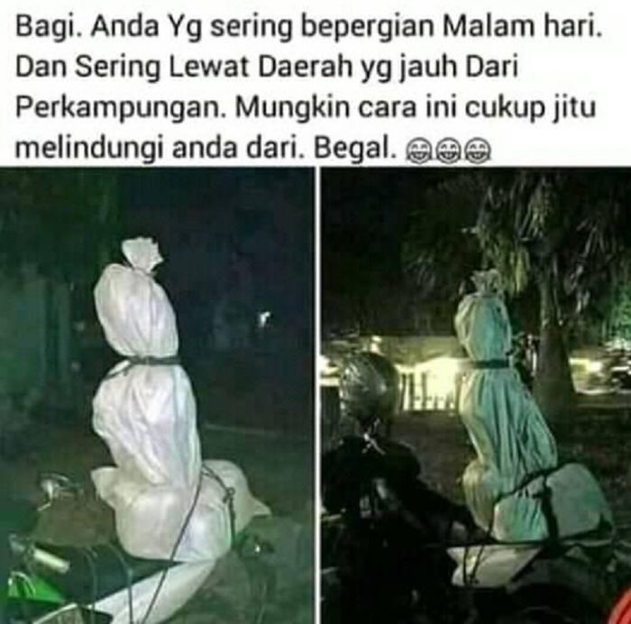 Coba bonceng pocong saat jalan malam hari dan sering melewati kawasan rawan.