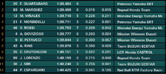 Dengan gap hanya 0,015 detik, bisa jadi Marquez akan menjadi ancaman terberat bagi Quartararo.