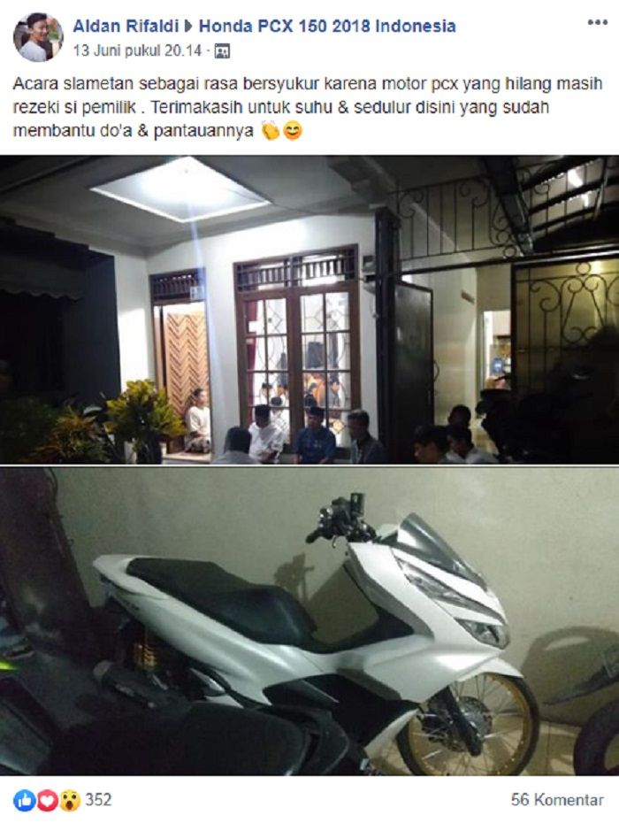 Enggak lama setelah diketemukan kembali, pemilik Honda PCX 150 langsung mengadakan syukuran sebagai tanda syukur.