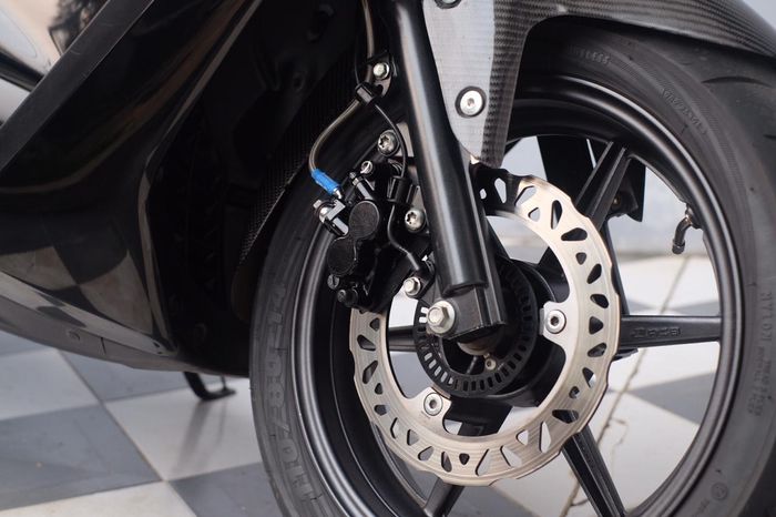 Untuk master rem dan slang rem, menurut Leo bawaan Yamaha NMAX masih mumpuni untuk kaliper 2 piston.