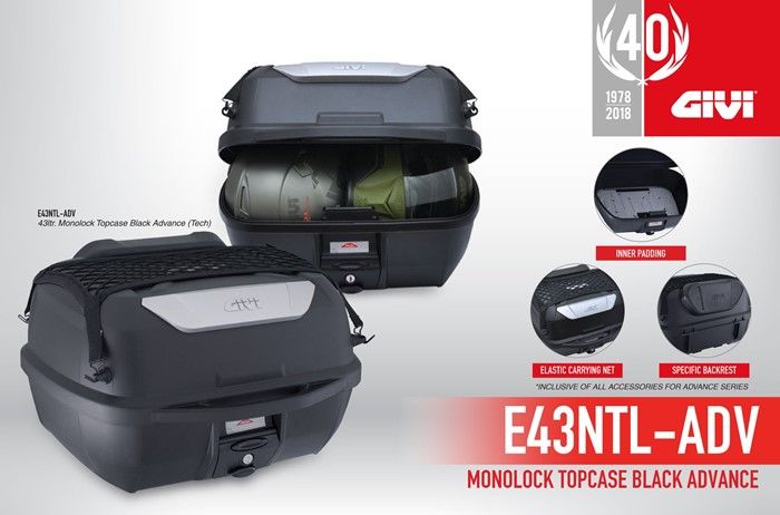 Makanya, GIVI melahirkan box motor GIVI E43, yang punya desain mirip E20 namun berkapasitas lebih besar, 43 liter.