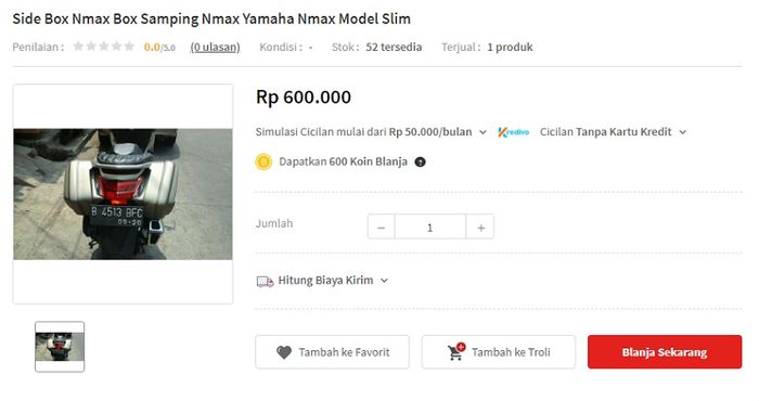 Dikutip dari toko jual beli online Blanja, side box keren ini juga bisa dicicil Rp 50 ribuan perbulan.