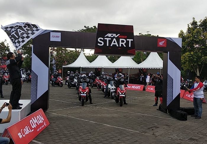 Skutik adventure Honda ADV150 yang digeber total ada 54 unit dan digas dari Kuta, Kintamani, dan finish di Denpasar.