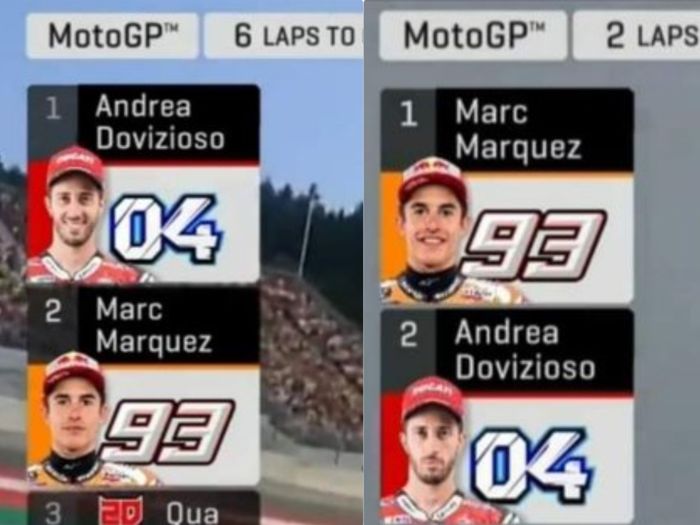 Contoh lain juga foto unggahan dari potongan foto saat Marc Marquez dan Andrea Dovizioso menempati posisi terdepan.
