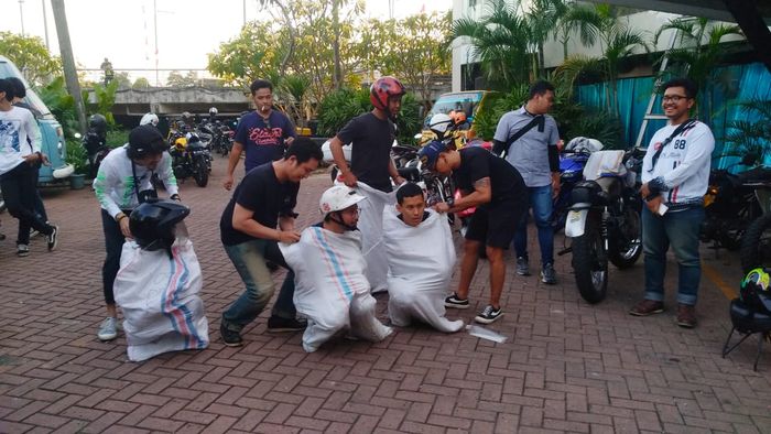 Lomba seru seruan untuk memeriahkan acara di markas Elders Garage ada Lomba balap karung jongkok dan slow race.