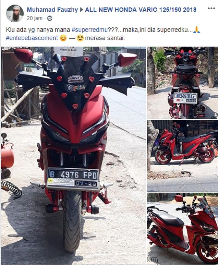 #entebebascoment- merasa santai" demikian tulisan Fauzhy di grup motor matic Honda tersebut.