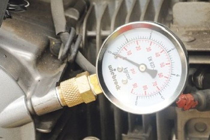 Dilakukan uji tekanan pelumas di salurannya, menggunakan pressure gauge atau alat ukur tekanan.