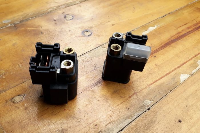Pastikan tidak rusak, karena komponen ini sering menerima beban arus lebih besar dari aki saat tombol ditekan.