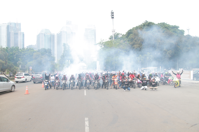 Gelaran Two Stroke Day 2019 berhasil mengasapi kota Jakarta dalam rolling thunder menuju Otobursa Tumplek Blek 2019 di Senayan.