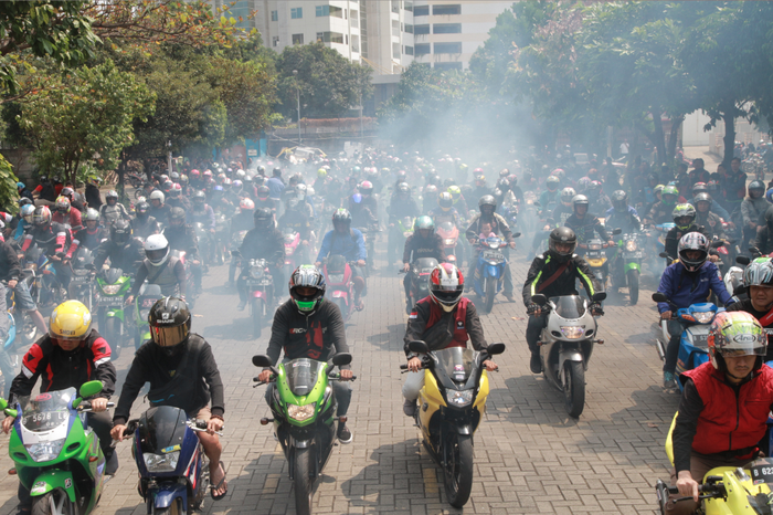 "Terkumpul sekitar 350 bikers yang tergabung dalam beberapa komunitas pecinta motor 2-tak seluruh Indonesia," bilang Helmi dari 2Stroke Lovers yang juga koordinator peserta.