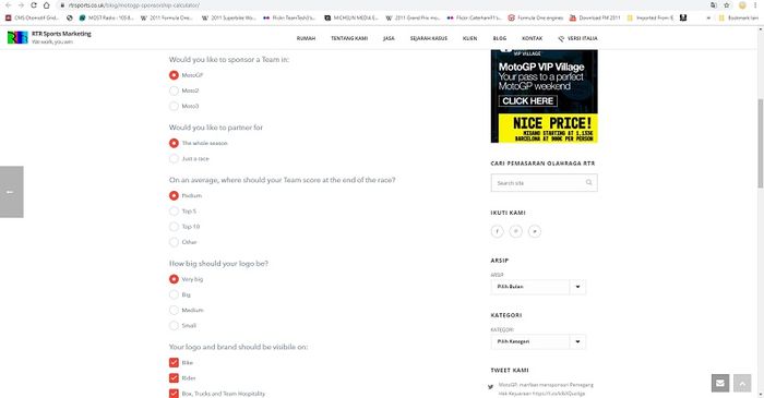 Gimana, tertarik jadi sponsor tim balap MotoGP? Brother bisa mencoba sendiri program hitung dari RTR tersebut di sini.