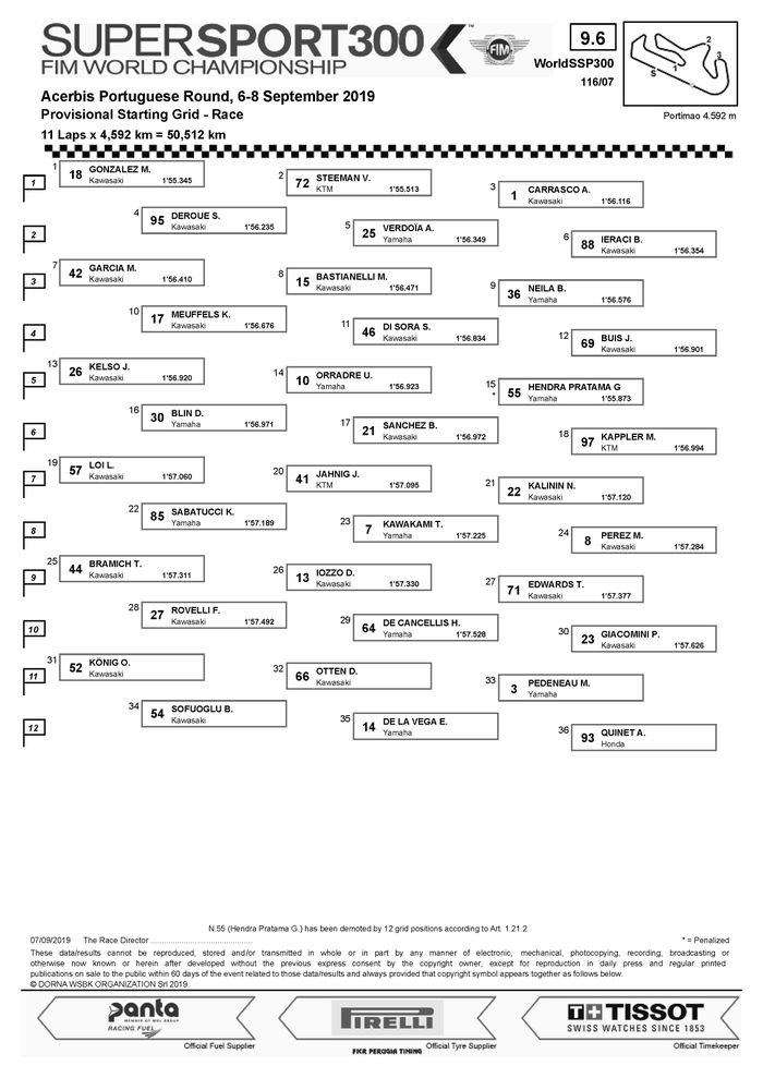 Alhasil, Galang Hendra Pratama kena hukuman turun 12 posisi di WSSP300 Portugal.