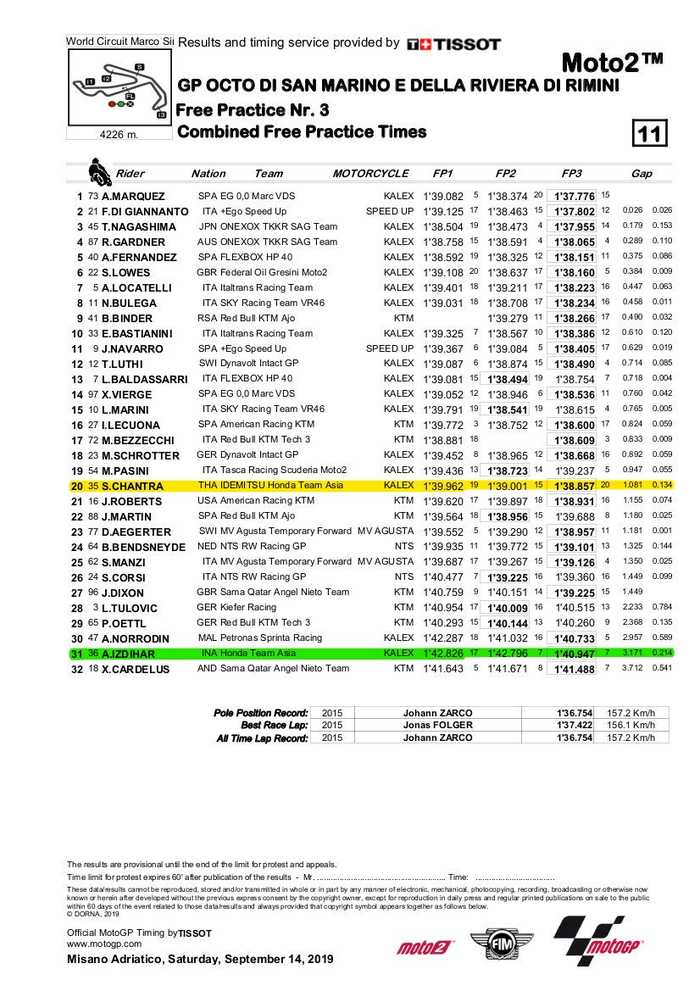 Berikut hasil kombinasi latihan resmi Moto2 San Marino 2019;