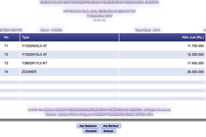 Gridmotor.id - Dari laman resmi Samsat DKI Jakarta terdaftar tipe motor Zoomer dengan NJKB (Nilai Jual Kendaraan Bermotor) sebesar Rp 29,3 juta.