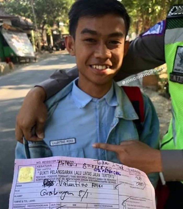 Gridmotor.id - Pria bernama Valentino Rossi terciduk sedang kena tilang petugas kepolisian dalam operasi patuh 2019.