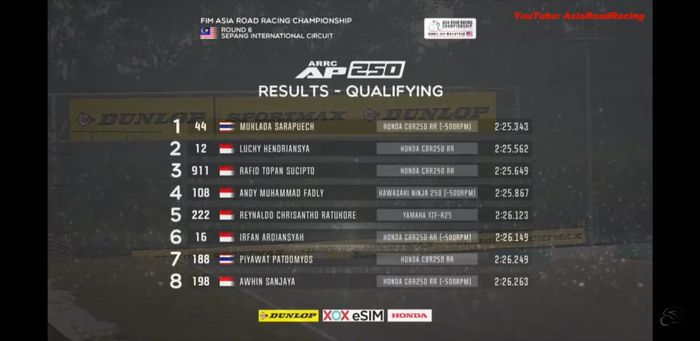 Inilah hasil kualifikasi ARRC AP250 ronde 5 Malaysia;