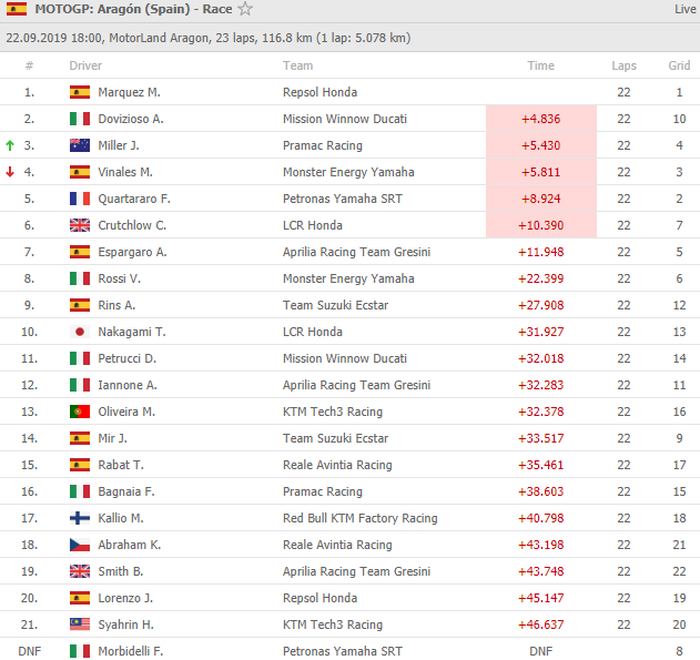 Simak hasil MotoGP Aragon 2019 di bawah :