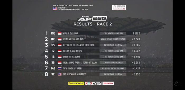 Artikel ini telah tayang di MOTOR Plus-online.com dengan judul Hasil Race 2 ARRC AP250 Malaysia, Indonesia Dominasi Total, Sapu 6 Besar