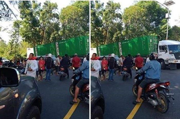 Menurut informasi yang didapat, pengendara motor tersebut terlibat tabrakan dengan satu truk kontainer.
