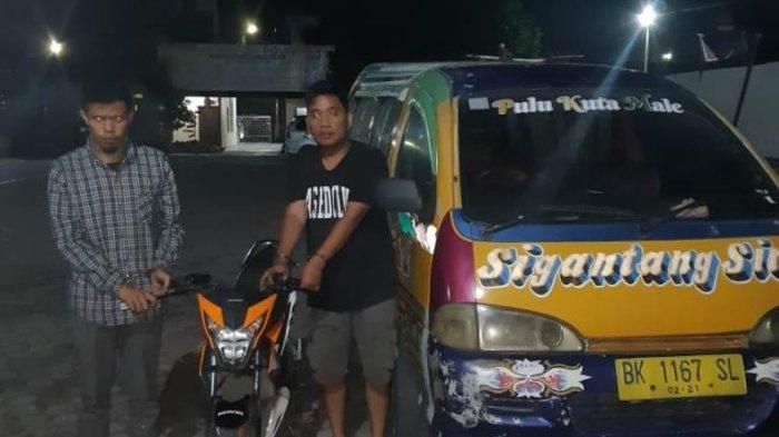 Kedua maling motor ini belum sempat menikmati hasil jarahannya, dua pemuda Ali Samadin Kaban dan Roy Suranta Surbakti dengan barang bukti di angkot.