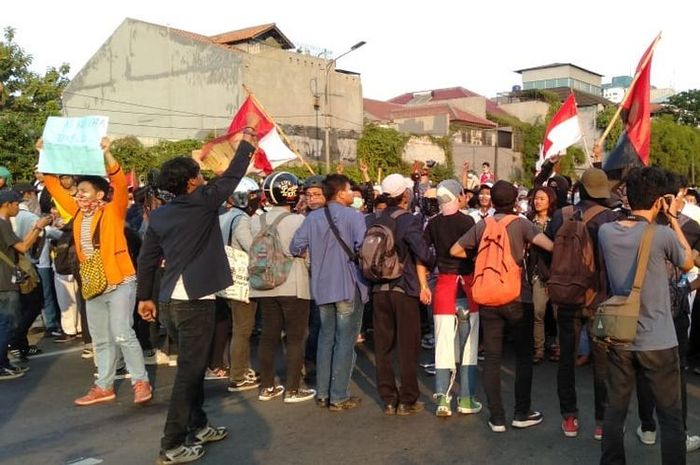 Gridmotor.id - Puluhan driver ojek online (ojol) bergandengan tangan dengan mahasiswa buat barikade untuk menahan emosi pendemo yang terjadi kemarin (30/9/2019).
