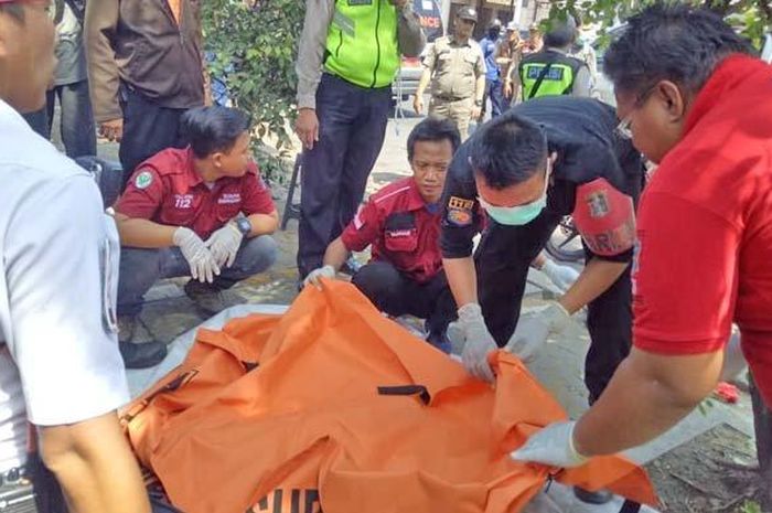 Driver ojol bernama Eli Haryowibowo (47), meninggal dunia seusai terserempet kendaraan tidak dikenal di Jalan Margorejo Indah, Surabaya, Jawa Timur, Senin (30/9/2019).