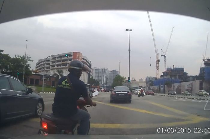 Kecelakaan tersebut berawal ketika pengendara motor tersebut sengaja berbelok ke kanan tanpa menyalakan lampu sein.