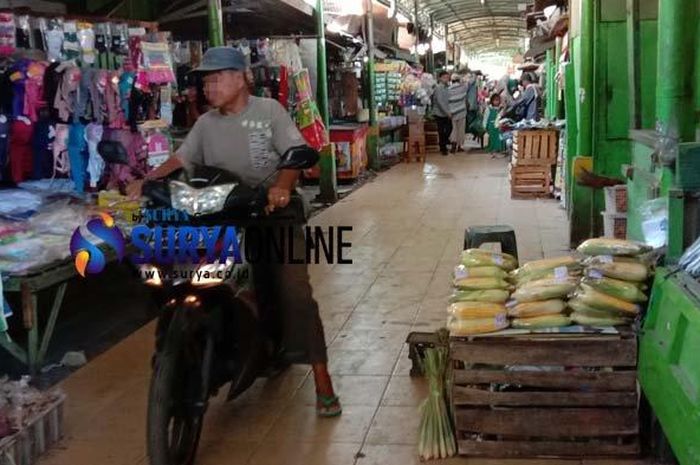 Pasalnya banyak pengendara motor masuk berlalu lalang ke dalam pasar tersebut.