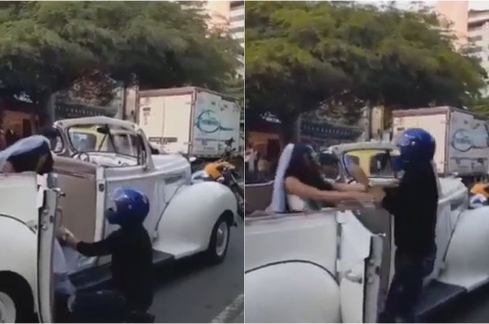 Gridmotor.id - Seorang pemotor mencegat iring-iringan mobil pengantin wanita yang merupakan mantan kekasihnya.