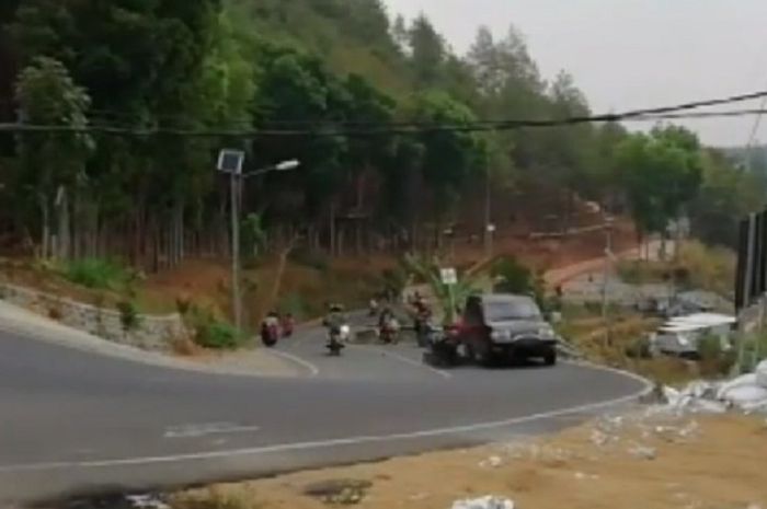 Akibatnya curamnya turunan, banyak pemotor terkapar di tengah jalan.