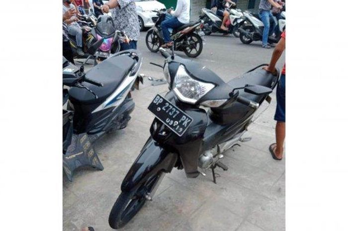 Honda Supra Fit warna hitam bernomor polisi BP 2737 PK.